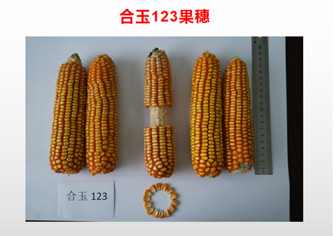 特征特性:普通玉米品種。在適應區(qū)出苗至成熟生育日數(shù)為115天左右,需活動積溫≧10℃活動積溫2400℃。幼苗生長勢強,該品種幼苗期第一葉鞘綠色,葉片綠色,株高285厘米,穗位高83厘米,18片葉。穗長19.5厘米,穗粗4.9厘米,每穗14~16行,每行37粒。白軸黃粒,籽粒中齒型,品質好,百粒重36.5克。植株整齊,株型半收斂。品質分析結果:容重756克/升。粗淀粉73.65%,粗蛋白10.23%,粗脂肪3.78%,賴氨酸0.28%。抗病性接種鑒定結果:中感大斑病,絲黑穗發(fā)病率4.5%。田間平均倒伏、倒折之和0.5%;絲黑穗田間自然發(fā)病株率各點最高發(fā)病3.0%;莖腐病各點最高發(fā)病5.0%;大斑病各點最高發(fā)病5級。