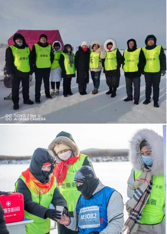 為更好地協助此次活動,撫遠市老科協提前開展了志愿者賽前會議,靠前指揮并進行了人員分配與講解志愿活動內容等具體事項。160名志愿者分別在賽道、8個補給站、1巡護組、1個收容組、3個折返區、8個計時區、主會場、嘉賓引導區、綜合服務區等地開展志愿服務工作,天寒地凍,熱情不減。他們在志愿崗位上各司其職,認真負責,始終以良好的態度服務他人,即使在寒冷的冬季也依然能看到他們甜甜的微笑,聽到他們用親切的聲音進行指引、服務。他們用真誠的付出、辛勤的汗水為選手們保駕護航,用微笑感染著賽場上的每一個人,展現了志愿者的良好精神風貌,成為賽場上一道靚麗的風景線、跑道上一支特殊的“護衛隊。