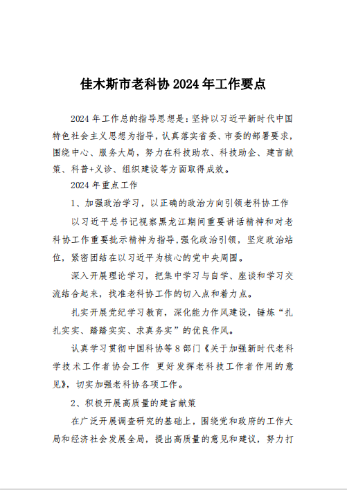 紅頭2024.6號 關于印發《佳木斯市老科協2024年工作要點》的通知
