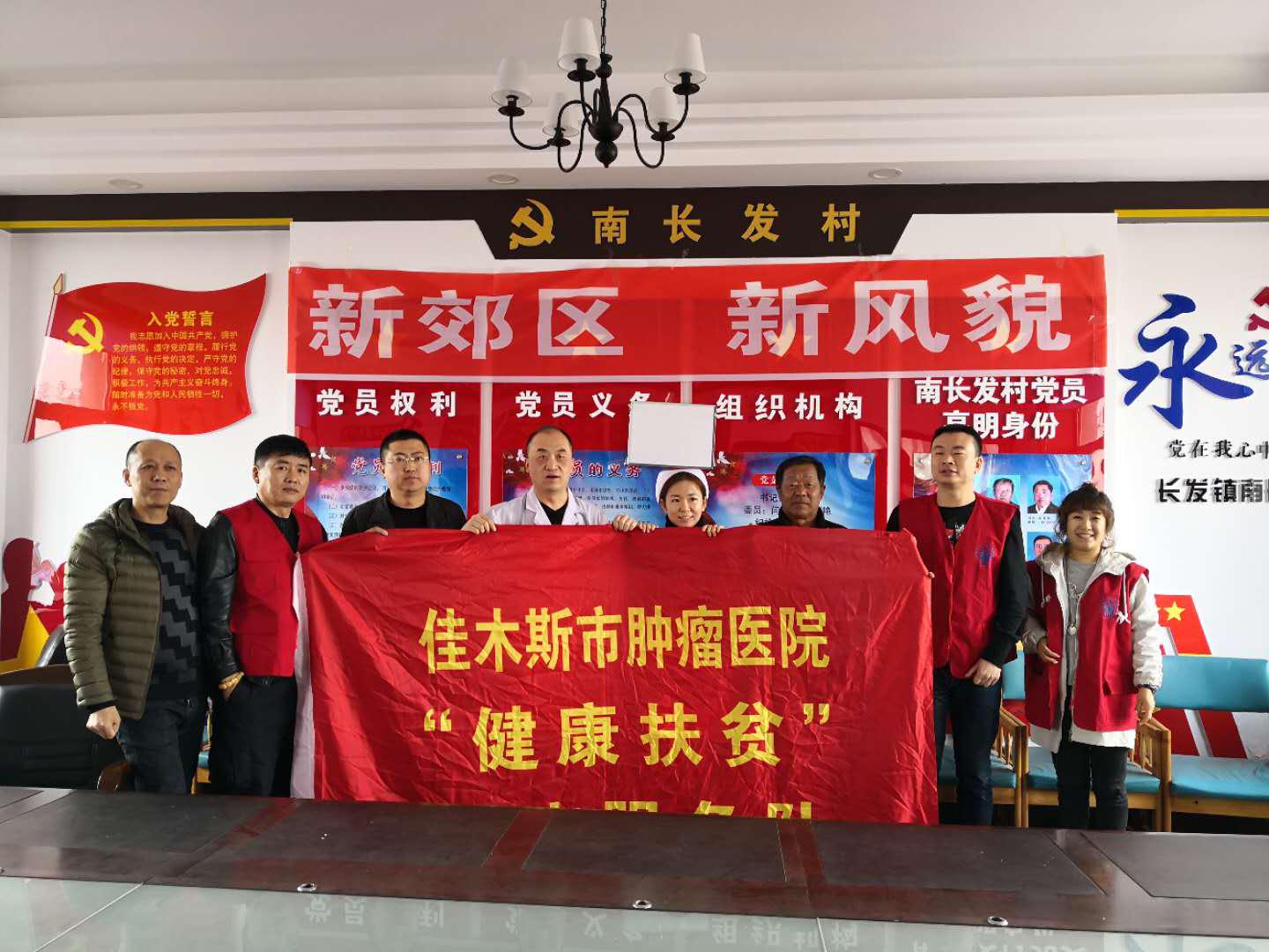4月12日,郊區老科協人文分會聘請市腫瘤醫院、佳木斯市久久智慧養老服務中心的醫護人員共同深入到所包扶的郊區長發鎮南長發村,為村民進行“健康扶貧”。