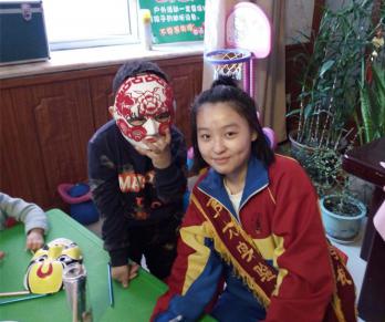 在現場,來自佳木斯前進區老科協云峰社區分會及第六實驗中學的近30名志愿者一對一、手把手地教30個孩子繪畫京劇臉譜和小雨傘。四歲聽力殘障兒童小明,看到小朋友們都比自己畫得快,小家伙雙手緊緊地握著臉譜,急得滿臉通紅。這可難不倒志愿者董丫,董丫是第六實驗中學學生會主席,平日里解決學生思想工作正是她的強項。看,董丫先在臉譜上劃分出三個部分,然后手把手地握住小明的小手將臉譜上部分涂成紅色,接著又將下面描繪成黑色,中間的色彩保持臉譜的本來色彩。瞬間,一張花臉的臉譜繪制成功了。小明緊緊握著自己親手繪制的臉譜,那高興勁就甭提了……