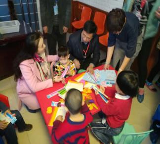 3月10日上午,佳木斯前進區三江聾兒康復中心里一片歡聲笑語。一群僅三四歲的小朋友們團團圍坐在學習桌前,在志愿者們的幫助下,開心地學習繪畫臉譜和小雨傘。孩子們畫著、笑著,沉浸在歡樂的氛圍里……