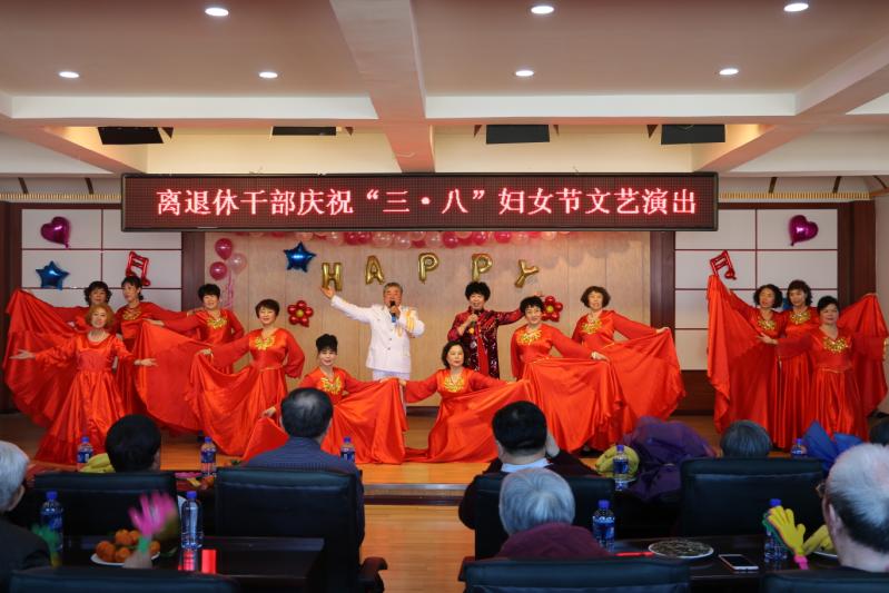 文藝演出在老干部合唱隊的《龍江是個好地方》、《愛我中華》中拉開序幕,雄壯激昂的音樂、整齊嘹亮的歌聲,充分表達了老干部們對祖國、對龍江大地的感激熱愛之情。舞蹈《敬祝毛主席萬壽無疆》、詩朗誦《巾幗英雄多壯志》、男聲獨唱《媽在家就在》、民樂合奏《金蛇狂舞鬧三八》、小品《空巢老人的心聲》等節目輪番登臺,不同的表演形式充分展現了老干部藝術團的演員們才華橫溢、蓬勃向上的精神面貌。旗袍走秀《江南夢》,優雅中透出自信、矜持中保持柔和,使中國女性傳統內斂與旗袍風格相得益彰,極具感染力。整場演出高潮迭起,精彩紛呈,博得了臺下觀眾的陣陣掌聲,在歌伴舞《走進新時代》的優美舞姿中落下帷幕。