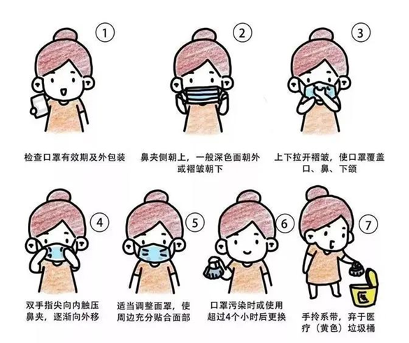 正確佩戴口罩正確帶口罩兒歌,我們一起來學習吧!小口罩,要戴牢,佩戴前后要洗手。深在外,淺在內。鼻夾在上請記好。掛耳朵,貼面部。拉開褶皺全包牢。金屬條,捏-捏,壓緊鼻夾密封條。口罩外,細菌多,及時更換很重要。全家人,共防疫。抵抗病毒能勝利。