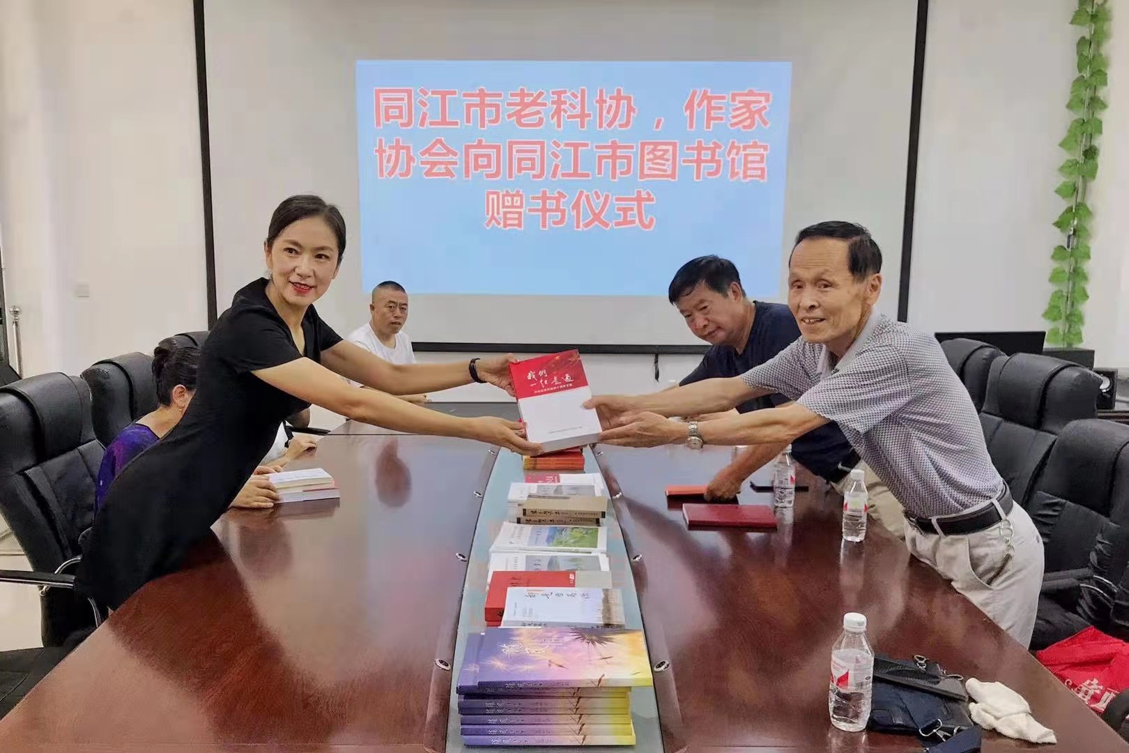 7月22日上午,同江市老科協、同江市作協領導班子成員來到市圖書館,將老科協會員、作家協會會員近年創作的各種書籍贈送給市圖書館。