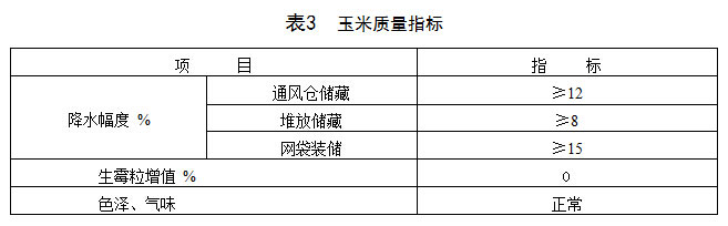 4.1.1 儲后玉米質量指標應符合表3規定。