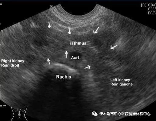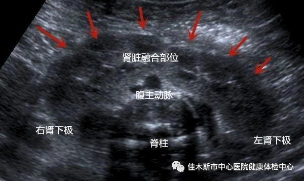 2019年4月23日,佳木斯市中心醫院健康體檢中心迎來一位體檢者,男性,59歲,既往從未進行過體檢,在子女陪同下前來進行全面檢查,主檢醫根據年齡、生活習慣和臨床表現為其推薦針對性的體檢項目,在進行腎臟彩超檢查時發現雙腎形態異常,上極實質于腹主動脈前相連,未見明顯占位性病變,體檢中心彩超會診組診斷為馬蹄腎,主檢醫對體檢者尿化驗、腎功、腫瘤系列等檢查進行綜合分析均未見明顯異常。馬蹄腎為先天發育異常,現階段并未出現腎炎等并發癥,暫不需特殊治療,建議定期復查腎臟。