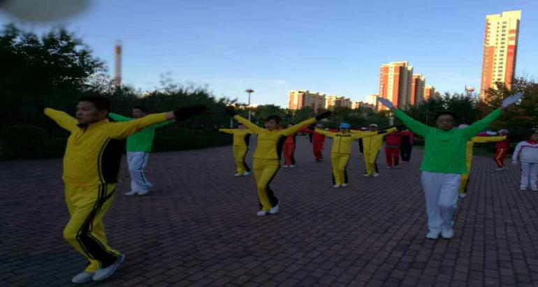 社區健身隊的隊員們用自己的實際行動為居民們送上了節日的祝福,以飽滿的熱情和昂揚的精神獻禮黨的十九大。