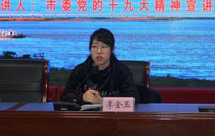 元旦新年來臨之際,2017年12月28日上午,富錦市委老干部局組織市離退休老干部(含縣處級退休老干部)、老科協會員,關工委和老促會成員,老干部大學與老年大學學員、臨江社區管理處人員,共計350多人集聚在市老干部局會議室,聆聽市委黨的十九大精神宣講團成員李金玉,宣講黨的十九大報告精神。李金玉從中國特色社會
