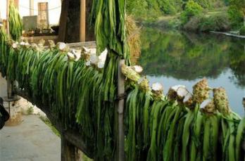 晾曬干菜,是東北人一種最好的儲菜方式。不管放置多久,只要是不沾濕、不受潮、注意通風,不發(fā)霉不生蟲,隨時都可以拿出來食用。食用時,先用溫水泡開,再加以調料和肉類,可烹調出各具特色的珍饈佳肴。例如“小雞扣蘑菇”、“雞肉燉土豆片”、“肉炒豆角絲”、“肉炒黃瓜錢”等,就是東北人喜歡吃的幾道傳統名菜。