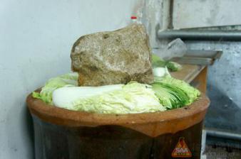 二為腌制酸菜。腌酸菜,東北人又稱“積酸菜”。一進入農歷九月深秋,東北的天氣開始變涼,地里種植的晚秋蔬菜:白菜、蘿卜開始收獲,收回的白菜可以窖藏,也可用于腌制酸菜。腌酸菜有兩種腌法,一種是生腌,另一種為焯腌。生腌,是將白菜的老幫和爛葉掰凈,經幾日晾曬使其脫水,然后一層一層的撒上鹽,嚴嚴實實地摁到酸菜缸里,再用石頭壓上,放到陰涼處,三天后可添滿清水,經過一個多月的發(fā)酵變酸后便可食用;焯腌,是將整理好的白菜放入鍋里,用開水進行焯燙,待晾涼后擺放到缸里。這樣腌的酸菜擺得緊密實成,減少了縫隙,不但增加了數量,而且因為白菜經過開水焯燙,起到了一定的消毒殺菌作用不易腐爛。腌酸菜是東北儲菜的一大特色,以酸菜為主料烹調出的菜肴“酸菜燉豬肉”、“酸菜燉血腸”、“酸菜燉粉條”又叫“積菜粉”成為了東北黑土地上頗具影響的名菜佳肴。由于酸菜與豬肉的配合,在一定程度上降解了豬肉的油脂,可能對防止動脈硬化、降低血脂,起到了一定的作用,若不怎么能深受東北人的喜歡呢?