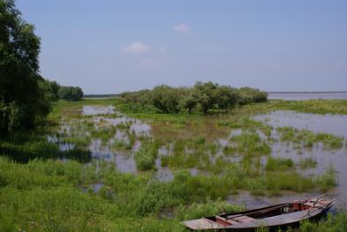 沿江灘涂從西至東均有分布,種類多樣,保持著比較完好的原始風貌。一種灘地為沼澤化草甸,分布在低河漫灘和低平地上,泡沼相連,以濕生沼生的蘆葦、毛果苔草、漂筏苔草為主,形成了蘆葦、蘆葦小葉樟、毛果苔草、漂筏苔草和灰脈—灰株苔草沼澤。水生植物分布于泥沼中,挺水植物有香蒲、草蒲、蘆葦;浮水植物有槐葉草、浮草、睡蓮;沉水植物有狐貍藻、孤尾菜、眼子菜。河網泡沼中盛產各種魚類、河蚌、草蝦等水生動物。
