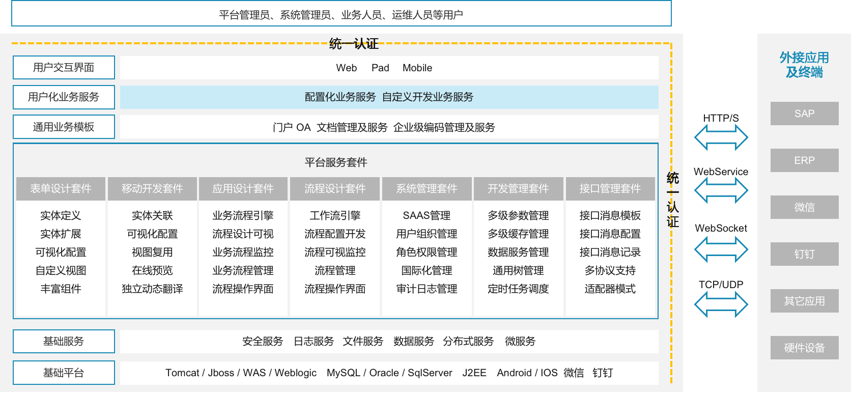 組件豐富,易于擴(kuò)展與整合,為企業(yè)應(yīng)用開發(fā)提速增效;微信、移動、平板一體化支持