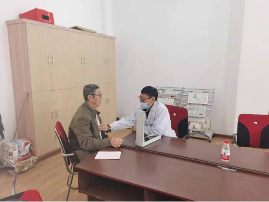 在醫生診室,內四科主任、副主任醫師張雪芳和外科副主任醫師尹維力對照彩超、心電細心檢查,不放過屏幕上每一個疑點,對測量指標異常的,詳細詢問其生活習慣及身體狀況,針對個體差異,提出科學的飲食、活動建議,并對老同志提出的各種疑問進行了耐心細致的解答。
